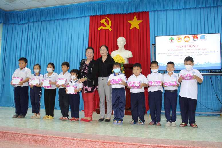 Rời khỏi Khu lưu niệm Luật sư Nguyễn Hữu Thọ, Đoàn tiếp tục đến với xã nông thôn mới Tân Hội – Thị xã Cai Lậy, tại đây Đoàn đã phối hợp với UBND xã đi thăm và tặng quà cho 2 mẹ Việt Nam anh hùng, 2 gia đình liệt sĩ, đồng thời trao tặng các phần quà cho 40 hộ nghèo và cận nghèo, 20 suất học bổng và 1 xe đạp, 1000 tập trắng, 80 hộp bút chì màu cho thiếu nhi, học sinh trên địa bàn xã với tổng trị giá gần 60 triều đồng.