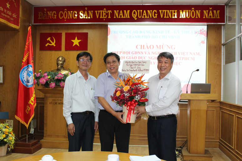 Đoàn công tác Hiệp hội Giáo dục nghề nghiệp và Nghề công tác xã hội Việt Nam và Hội Giáo dục Nghề nghiệp TP. HCM do Ths Lâm Văn Quản – Phó chủ tịch Hiệp hội làm trưởng đoàn đã đến thăm và chúc mừng Trường Cao đẳng Kinh tế – Kỹ thuật TP. HCM (HOTEC) nhân dịp Trường khánh thành Cơ sở 2 của ở Xã Phú Xuân, Huyện Nhà Bè.