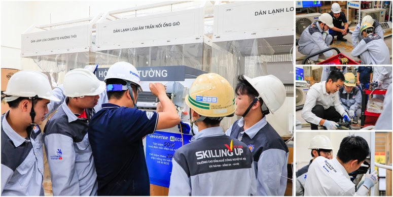 Tại chương trình đào tạo này, Panasonic đã hỗ trợ các hệ thống thiết bị trình chiếu, âm thanh phục vụ đào tạo; Khu vực trưng bày các mẫu điều hòa Panasonic chính hãng, giúp sinh viên quan sát và học tập trực quan. Đồng thời, cử chuyên gia kỹ thuật trực tiếp hướng dẫn, giải đáp và chia sẻ kinh nghiệm nghề nghiệp thực tế.