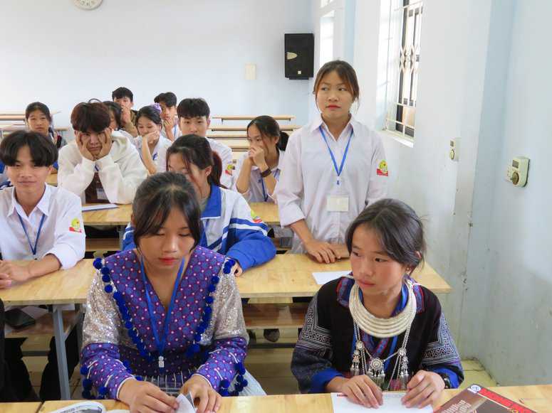 Em Vàng Thị La, dân tộc H’Mông, xã Hoàng Liên, huyện Sapa, học sinh năm thứ nhất hệ 9+ nghề hướng dẫn viên du lịch,Trường CĐ Lào Cai, cho biết: “Bố mẹ muốn em lấy chồng, không muốn em đi học. Nhưng được các thầy cô Trường CĐ Lào Cai về tận xã tư vấn, đi học nghề không mất tiền, thế là em đăng ký vào học. Vừa được học văn hóa, vừa được học nghề, em vui lắm”. “Ở lớp phổ thông của em có nhiều bạn đi học nghề như em không?” “Lớp có 30 bạn thì có 15 bạn đi học như em. Có khoảng 10 bạn ở nhà lấy vợ, lấy chồng”.