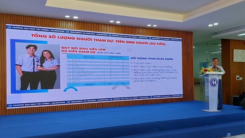 Đại diện trường Đại học Tài chính Marketing cho biết, sự kiện được tổ chức với mong muốn trở thành cầu nối hữu hiệu giữa sinh viên UFM với doanh nghiệp, tạo điều kiện tối đa cho sinh viên có việc làm ngay trước khi ra trường. Ngày hội tuyển dụng tích hợp – JOB FAIR UFM lần này có gần 50 doanh nghiệp tham gia tuyển dụng với hơn 3.000 đầu công việc cho sinh viên, từ thực tập sinh đến bán thời gian hay toàn thời gian. Đa dạng các lĩnh vực từ ngân hàng, bất động sản, giáo dục đến thương mại, marketing, kế toán, du lịch, nhà hàng, khách sạn và các lĩnh vực kinh tế có liên quan.