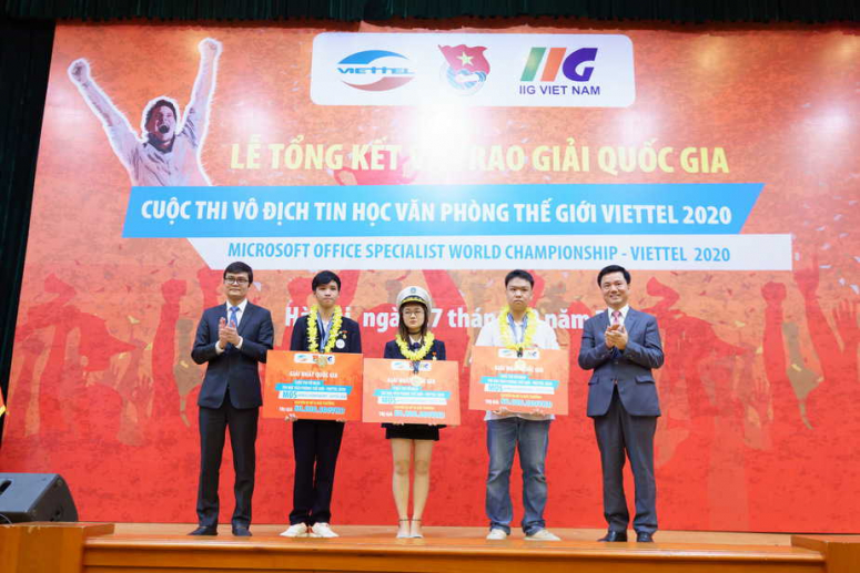 Ba nhà vô địch của MOSWC – Viettel 2020 năm nay là: Nguyễn Quốc Huy – học sinh THCS & THPT Nguyễn Tất Thành, Hà Nội – Vô địch quốc gia nội dung Microsoft Word 2016; Thái Bảo Ngọc – sinh viên SV ĐH Hàng Hải, Hải Phòng – Vô địch quốc gia nội dung Microsoft Excel 2016; Nguyễn Anh Kiệt – học sinh THPT Chuyên Hùng Vương – Phú Thọ – Vô địch quốc gia nội dung Microsoft PowerPoint 2016.