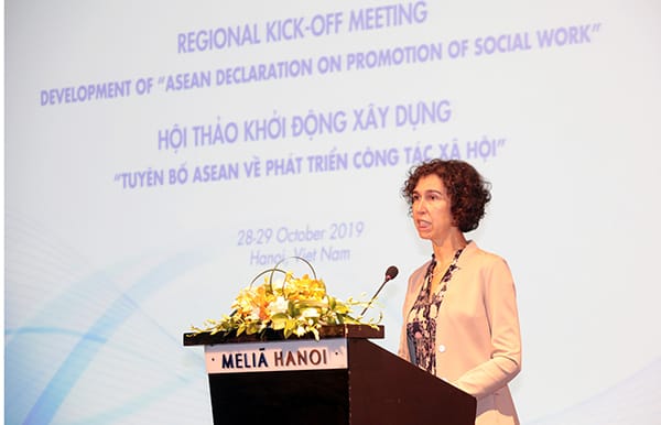 Còn theo đánh giá của bà Sita Sumrit, Ban Thư ký ASEAN, Hiệp hội công tác xã hội ASEAN mà đi đầu là Chính phủ Việt Nam đã khởi động sáng kiến xây dựng Tuyên bố ASEAN về Phát triển Công tác Xã hội nhằm: Thiết lập sự đồng thuận khu vực về quy mô và nhiệm vụ của lực lượng lao động làm dịch vụ xã hội; nâng cao năng lực khu vực trong việc lên kế hoạch, phát triển hỗ trợ lực lượng lao động làm dịch vụ xã hội; xây dựng một tuyên bố về phát triển công tác xã hội.