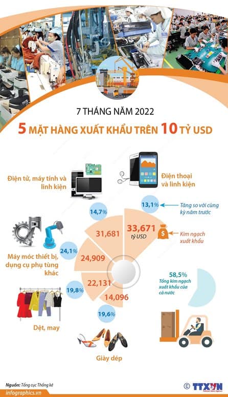 Trang Chủ » Kinh tế » [Infographic] 7 tháng năm 2022, có 5 mặt hàng xuất khẩu trên 10 tỷ USD 04/08/2022 10:28:03 Kinh tế, Thị trường [Infographic] 7 tháng năm 2022, có 5 mặt hàng xuất khẩu trên 10 tỷ USD Posted on 04/08/2022 by Phan Hải 04 Th8 Bộ trưởng Đào Ngọc Dung: 29 địa phương chưa giải ngân đồng vốn hỗ trợ người lao động nào VinUni cấp học bổng toàn phần đào tạo Tiến sĩ Khoa học máy tính khóa I