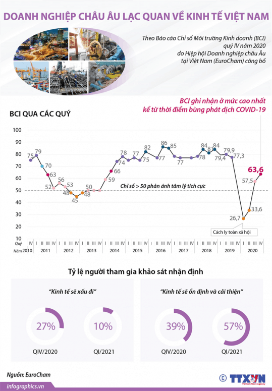 Trang Chủ » Kinh tế » [Infographic] Doanh nghiệp châu Âu lạc quan về kinh tế Việt Nam 08/02/2021 6:15:00 Kinh tế [Infographic] Doanh nghiệp châu Âu lạc quan về kinh tế Việt Nam Posted on 08/02/2021 by Phan Hải 08 Th2 Lao động ngành giao thông: Mong được trả nợ lương, không mong thưởng Tết Bùng nổ chiêu thức lừa đảo ngân hàng trong dịp Tết