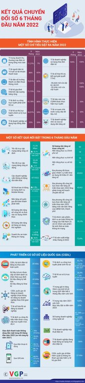 Trang Chủ » Công nghệ » [Infographic] Kết quả chuyển đổi số 6 tháng đầu năm 2022 16/08/2022 8:34:33 Công nghệ, Hạ tầng, Tin nhanh [Infographic] Kết quả chuyển đổi số 6 tháng đầu năm 2022 Posted on 16/08/2022 by Phan Hải 16 Th8 Tại phiên họp thứ ba của Ủy ban Quốc gia về chuyển đổi số, Bộ Thông tin và Truyền thông đã báo cáo về tình hình chuyển đổi số trong 6 tháng đầu năm 2022. Hỗ trợ người lao động nghèo đi làm việc ở nước ngoài Cảnh báo lừa đảo xuất khẩu lao động Hàn Quốc theo thị thực E7