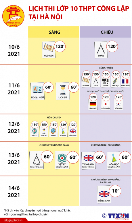 Trang Chủ » Nghề nghiệp và Cuộc sống » Nhịp sống mới » [Infographic] Lịch thi lớp 10 THPT công lập Hà Nội 17/04/2021 10:19:10 Nhịp sống mới [Infographic] Lịch thi lớp 10 THPT công lập Hà Nội Posted on 17/04/202127/03/2025 by Phan Hải 17 Th4 Trường nghề đón đầu xu thế Nguyễn Thị Cẩm Vân, nhà sáng lập OSLA: Vượt vũng an toàn, tạo sự khác biệt