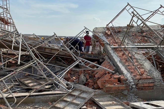 Bức tường đổ sập cao khoảng 8 m, dài 109 m. Khi xảy ra sự cố có khoảng 50 công nhân đang làm việc tại công trình.