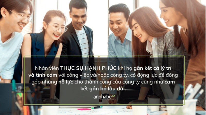 Tại Việt Nam, Anphabe là đơn vị tiên phong đưa ra định nghĩa và khung đo lường “Nguồn Nhân Lực Hạnh Phúc”, giúp các doanh nghiệp và lãnh đạo hiểu rằng: Người đi làm THỰC SỰ HẠNH PHÚC khi họ gắn kết cả lý trí và tình cảm với công việc và/hoặc công ty, có động lực để đóng góp những nỗ lực cho thành công của công ty cũng như cam kết gắn bó lâu dài.
