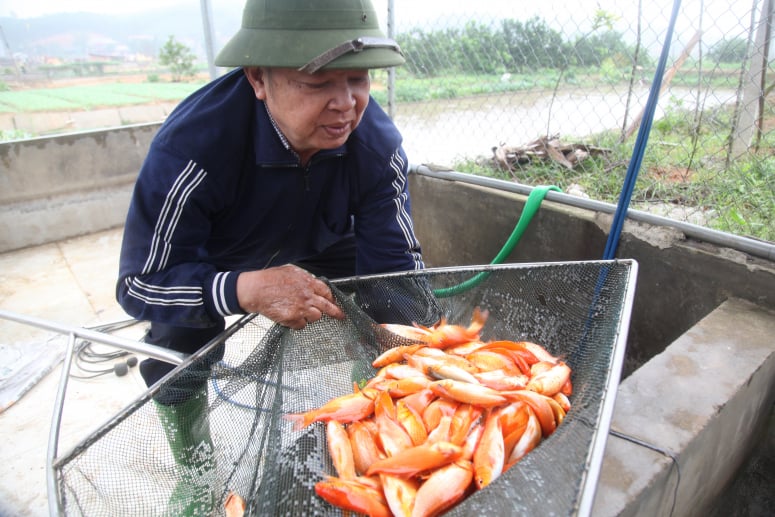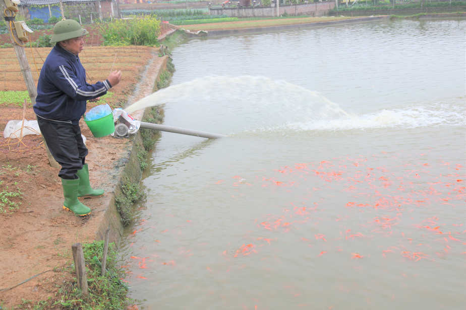 Theo ông Hà Công Kỷ (71 tuổi), ngoài nuôi cá chép đỏ cung cấp cho thị trường dịp Tết ông Công, ông Táo, ông còn giành 2 sào ao để nuôi cá chép đỏ bố mẹ, cung cấp giống cho các hộ khác.