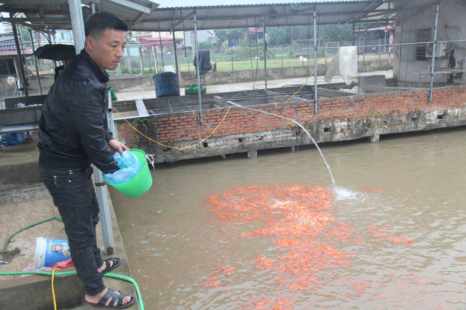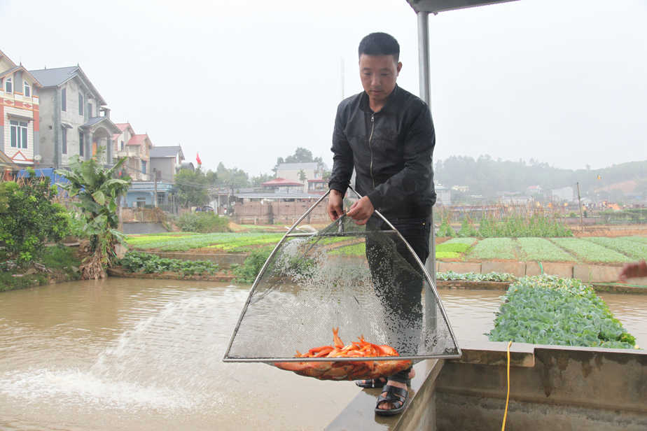 Anh Trần Văn Tiếp, (SN 1983) cho biết, anh nối nghiệp nghề nuôi cá chép đỏ từ cha truyền lại và đến nay đã có 20 năm làm nghề. Thu nhập từ nuôi cá cao gấp 2,3 lần so với trồng lúa trong khi công việc đơn giản hơn. Hiện nay, cá trong ao nhà anh đã được các thương lái ở Hà Nội, Bắc Ninh, Bắc Giang đặt cọc hết hàng với giá 150 nghìn đồng/kg.