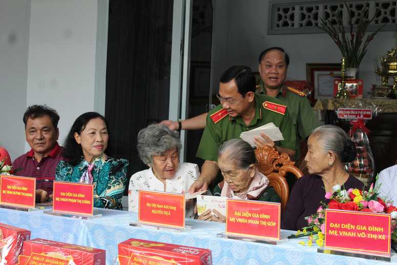 Theo đó, Thiếu tướng Đinh Thanh Nhàn, Ủy viên Ban thường vụ Đảng ủy, Phó Giám đốc Công an TP. HCM đã đến thăm hỏi động viên và gửi tặng các phần quà các gia đình chính sách tại nhà của liệt sĩ Huỳnh Văn Bánh (hy sinh năm 1969 tại huyện Bến Cát, Bình Dương) và Mẹ Việt Nam anh hùng Phạm Thị Chính, vợ của liệt sĩ Huỳnh Văn Bánh (mất ngày 31/12/2015), Mẹ Việt Nam anh hùng Nguyễn Thị À,…
