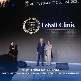 Tự hào khi Viện Thẩm mỹ Quốc tế Le’Bali – đại diện duy nhất của Việt Nam – được vinh danh với giải thưởng “Juvelook Top User Award”, ghi nhận là 1 trong 4 phòng khám có nhiều ca điều trị lâm sàng thành công nhất với Juvelook trên toàn cầu.