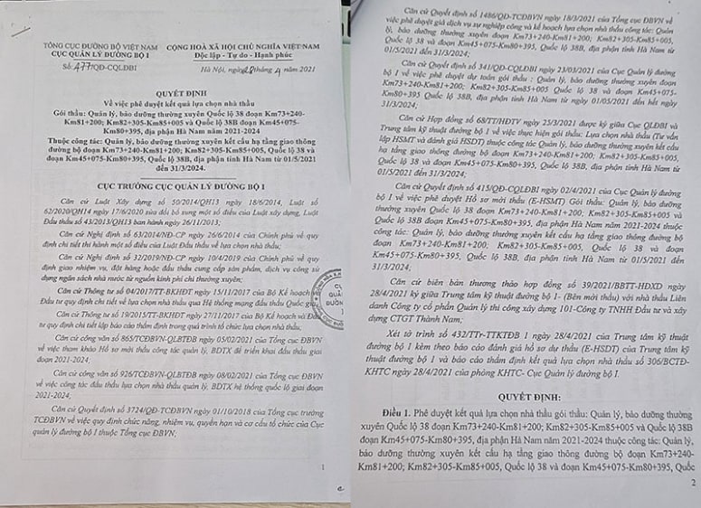 Cục Quản lý đường bộ I vừa tổ chức gói thầu bảo trì quốc lộ 38 và 38B nhưng khi ra quyết định phê duyệt lựa chọn nhà thầu, một nhà thầu khác phản ánh đơn vị trúng thầu có dấu hiệu tiêu cực.