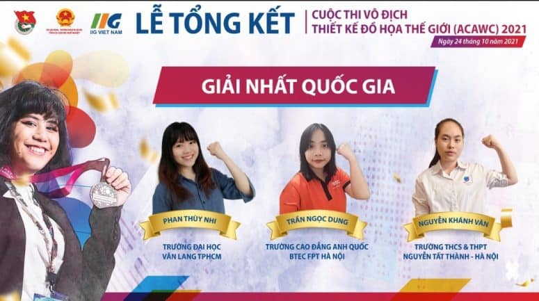Tại Lễ tổng kết và trao giải Cuộc thi Vô địch Thiết kế đồ họa thế giới – ACAWC 2021 tại Việt Nam, 3 quán quân quốc gia đại diện cho đội tuyển Việt Nam tham dự vòng chung kết thế giới đã chính thức lộ diện, gồm: Phan Thuỳ Nhi – Đại học Văn Lang TPHCM, Trần Ngọc Dung – Cao đẳng Anh quốc BTEC FPT Hà Nội, Nguyễn Khánh Vân – THCS-THPT Nguyễn Tất Thành, Hà Nội.