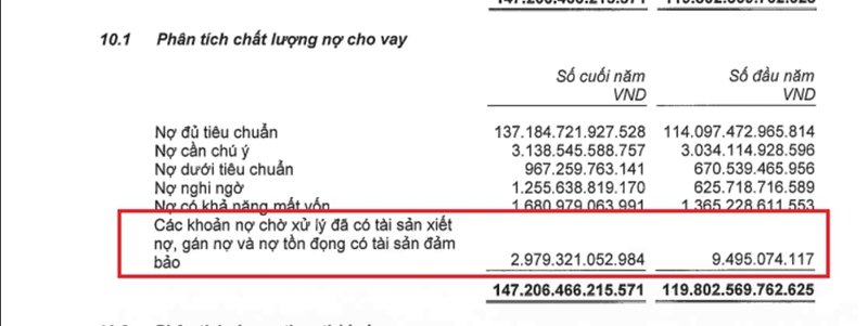 Tỷ lệ nợ xấu sau kiểm toán giảm nhẹ từ 2,7% xuống còn 2,6%. Tỷ lệ bao phủ nợ xấu cũng được cải thiện, từ 50% lên hơn 64%. Nợ có khả năng mất vốn tính đến hết năm 2023 tại OCB tăng 23% so với cùng kỳ lên hơn 1.680 tỷ đồng. Đặc biệt, các khoản nợ chờ xử lý đã có tài sản xiết nợ, gán nợ và tồn đọng tăng gấp 331 lần so với cùng kỳ. So với đầu năm 2023 số nợ này chỉ hơn 9 tỷ, nhưng tính tới cuối năm số nợ này đã tăng lên 2.979 tỷ đồng, quá thần tốc so với ngân hàng tầm trung như OCB.