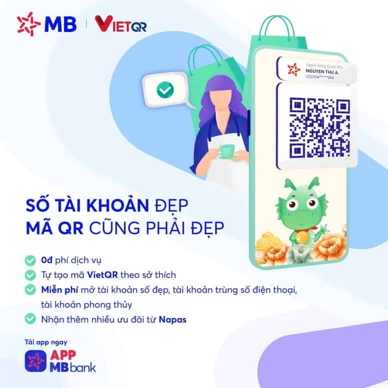 Đáng chú ý, đây được xem là tính năng thuận tiện, an toàn và vô cùng hữu ích đặc biệt cho chủ cửa hàng, chủ shop online,… khi MB hoàn toàn không thu phí dịch vụ, chủ cửa hàng nhận tiền thanh toán ngay sau khi được quét mã. Đặc biệt trong tháng 6 này, MB dành riêng loạt ưu đãi hấp dẫn cho các chủ cửa hàng như: Tặng tài khoản số đẹp, tài khoản trùng số điện thoại, miễn phí đặt mã QR tại cửa hàng. Bên cạnh đó, chủ các cửa hàng và khách hàng khi thanh toán cũng sẽ nhận được thêm ưu đãi đến từ Napas.