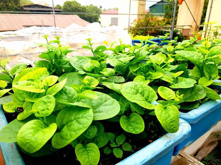 Nếu trồng trong chậu hay khay xốp, khi cây rau mồng tơi có 3- 4 lá thật, người trồng có thể tỉa bớt để ăn. Khi tỉa, người dân nên giữ lại cây rau theo hàng để cây có khoảng cách lớn thêm mà không bị cạnh tranh dinh dưỡng, ánh sáng. Sau 25–30 ngày tiếp theo, khi rau mồng tơi cao được 35–40 cm là thời điểm người trồng cây có thể cắt lá để dùng.