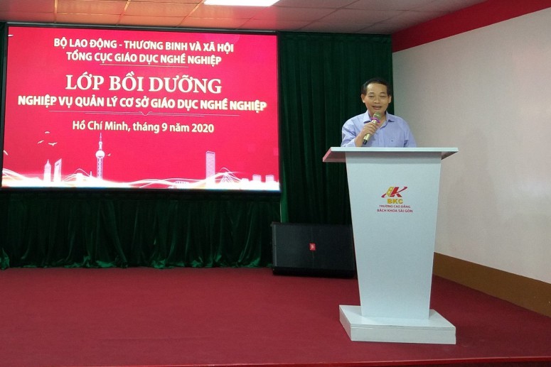 Ông Trần Quốc Huy – Vụ trưởng Vụ Tổ chức cán bộ phát biểu tại lớp Bồi dưỡng cán bộ quản lý cơ sở giáo dục nghề nghiệp tại thành phố Hồ Chí Minh, tháng 9/2020