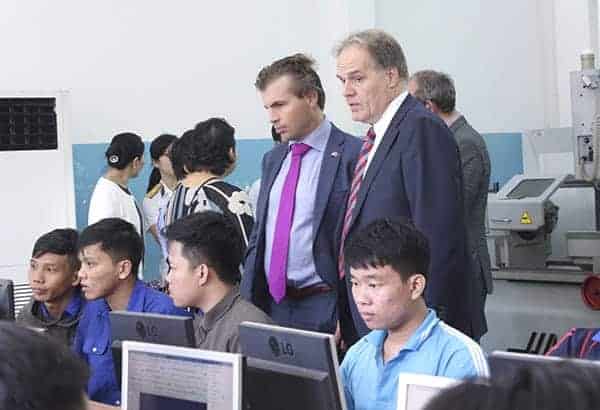 Đại diện doanh nghiệp tham quan lớp học xưởng thực hành tại TDC