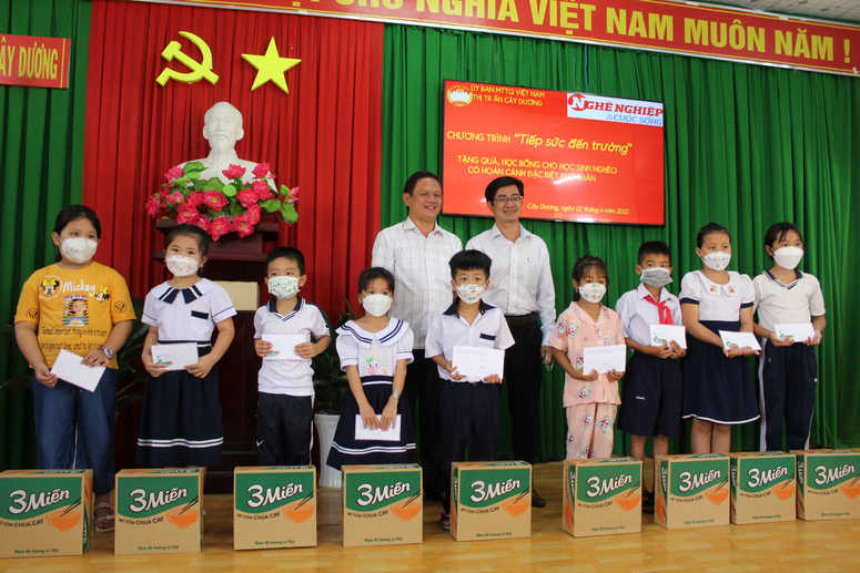 Ngày 02/04/2022, tại UBND thị trấn Cây Dương, huyện Phụng Hiệp, tỉnh Hậu Giang đã diễn ra lễ trao quà và học bổng cho học sinh có hoàn cảnh đặc biệt khó khăn bị ảnh hưởng bởi đại dịch Covid-19 với chủ đề “Tiếp sức đến trường”, do UBND thị trấn Cây Dương phối hợp cùng Tạp chí Nghề nghiệp và Cuộc sống tổ chức.
