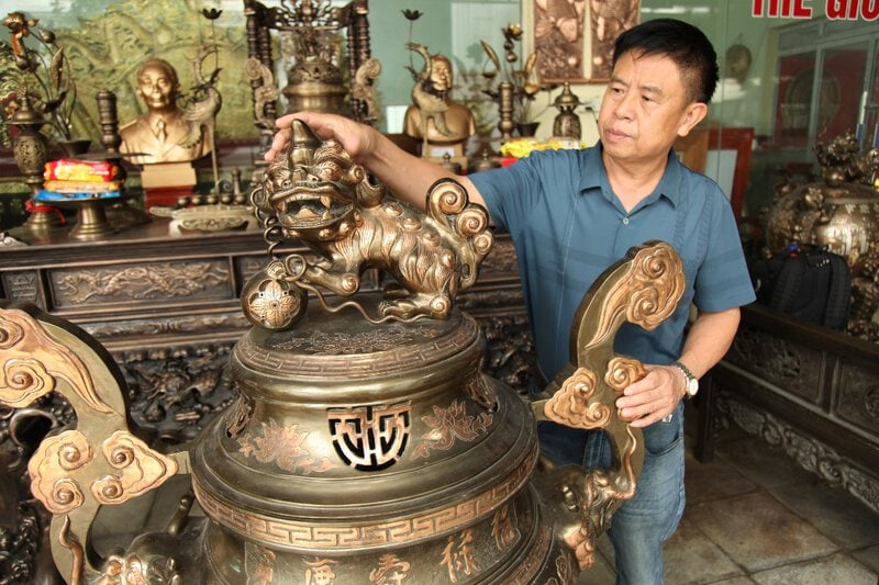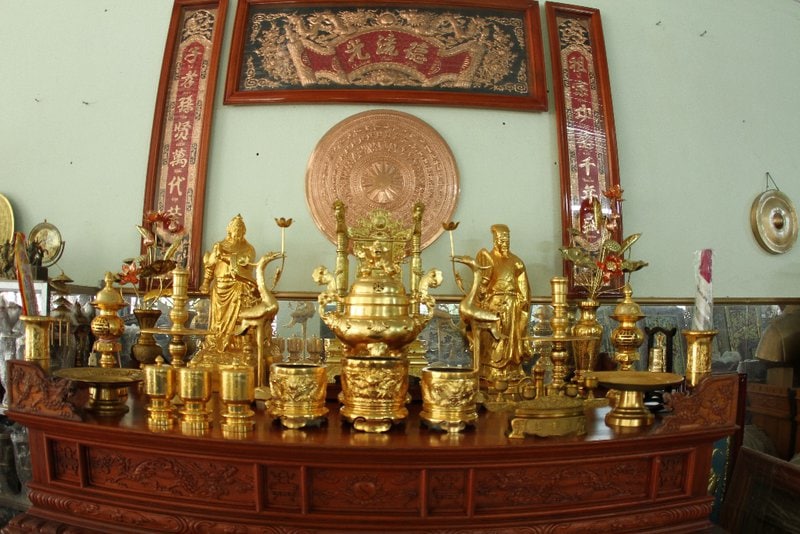 Những chiếc trống đồng, cồng chiêng, tượng đồng, đồ thờ tự… hội tụ nét đẹp văn hóa nghệ thuật và tinh hoa của nghề đúc đồng cổ truyền.