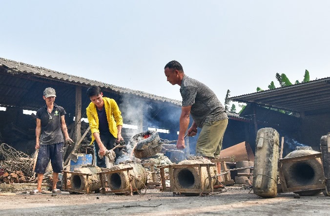 Một trong những khâu quan trọng để đúc trống đồng bằng phương pháp thủ công là chọn đất làm khuôn đúc và tạo hoa văn trên khuôn đúc. Các bước thực hiện phần lớn đều làm thủ công.
