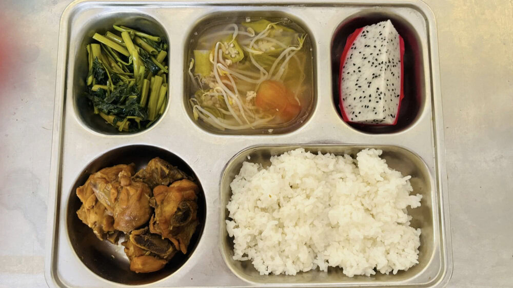 Suất ăn do SaGoFood cung cấp tại trường Tiểu học Tân Quy. Ảnh: Website trường Tiểu học Tân Quy
