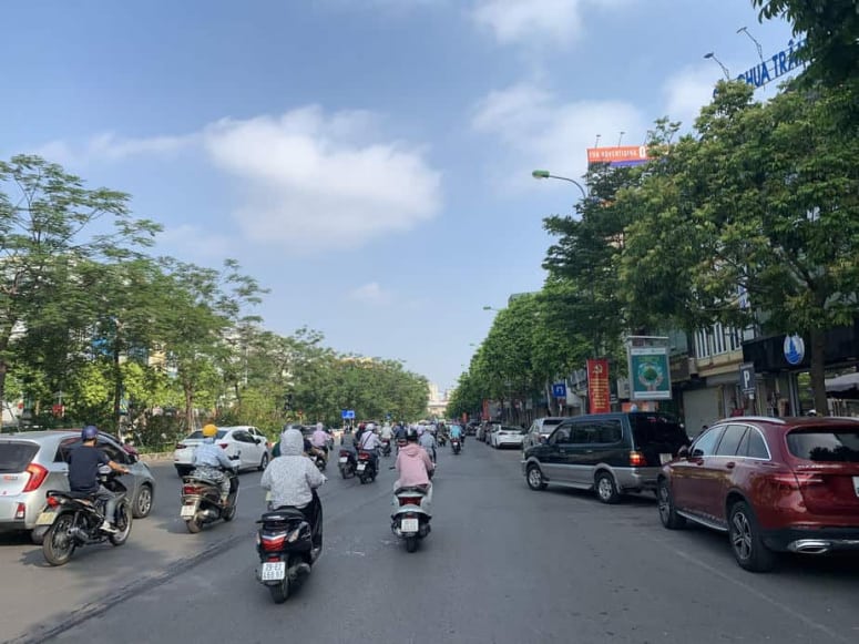 Người dân tham gia giao thông trên tuyến phố Xã Đàn được cải tạo hệ thống cây xanh
