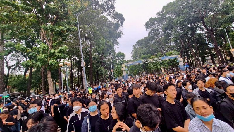 Hàng trăm các đoàn đại biểu và các tầng lớp nhân dân, trong đó có rất nhiều các bạn trẻ lần lượt, nghiêm trang tới tiễn biệt Tổng Bí thư Nguyễn Phú Trọng.
