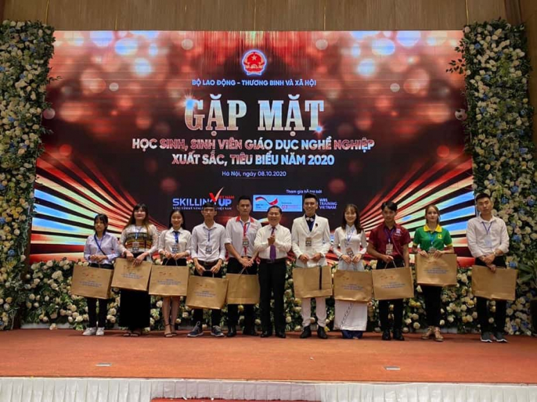 - Nguyễn Công Thiện (áo đỏ) tại Lễ tuyên dương 130 HSSV cơ sở GDNN tiêu biêu năm 2018-2019