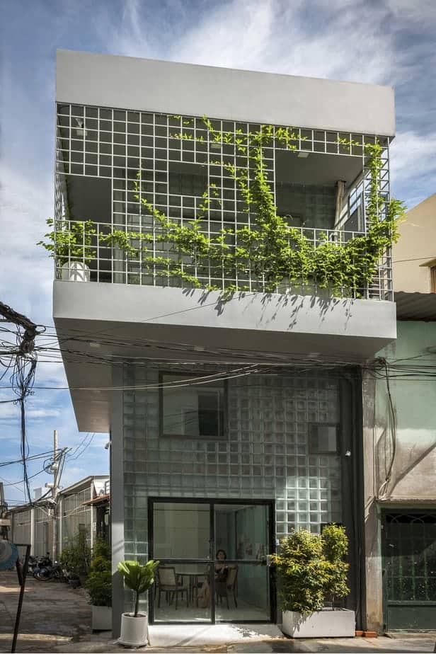 Tầng 3 là điểm nhấn chính của ngôi nhà với trần cao, thoáng và rộng . Xung quanh tầng 3 là giàn dây leo cao đến mái nhà. Ô cửa sổ hình vuông đồng dạng với gạch kính, được xếp đặt khéo léo để mở ra tầm nhìn phía giàn dây leo, đồng thời tránh được tầm nhìn trực diện từ các ngôi nhà khác trong khu phố.