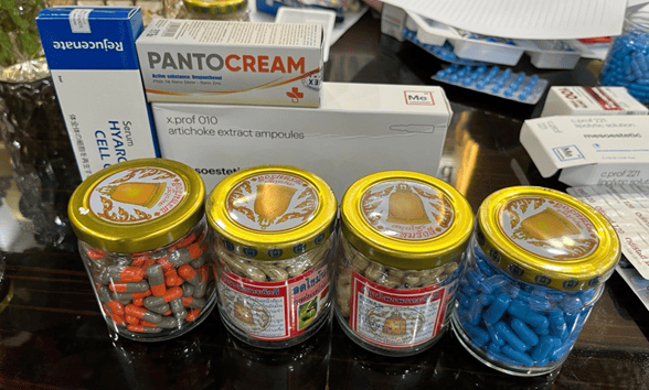 Ngoài ra, đoàn thanh tra còn phát hiện các sản phẩm viên nang (không nhãn mác), serum không nhãn phụ tiếng Việt, không rõ nguồn gốc xuất xứ.