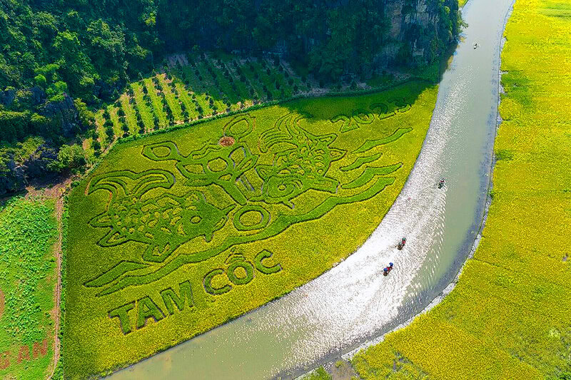 Những năm trước trong tuần lễ du lịch, cũng tại cánh đồng này, Ninh Bình đã tạo hình “Lá cờ hội” và “Lý ngư vọng nguyện”, thu hút sự yêu thích của nhiều du khách.