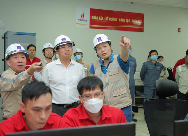 Chủ tịch HĐTV Petrovietnam Hoàng Quốc Vượng kiểm tra công tác hòa lưới đồng bộ chiều ngày 7/5/2022