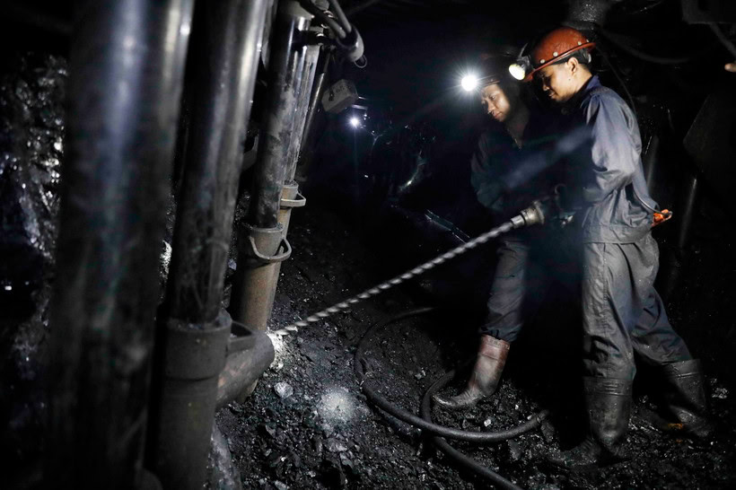 Công việc khai thác than được xem là nặng nhọc, độc hại, nguy hiểm. Ảnh: TTXVN