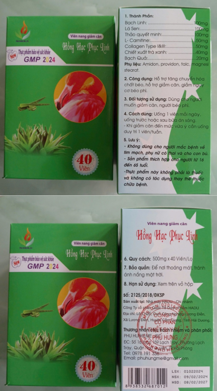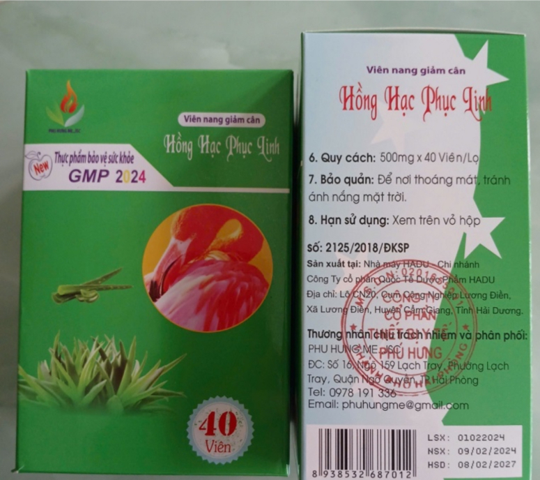 Ngày 1/6, Cục An toàn Thực phẩm đưa ra thông báo sau khi tiếp nhận báo cáo của Viện Y tế công cộng TP. HCM về kết quả kiểm nghiệm mẫu giám sát. Theo đó, viên nang giảm cân Hồng Hạc Phục Linh bị phát hiện chứa các chất cấm gồm Sibutramine, Desmethylsibutramine và Didesmethylsibutramine.