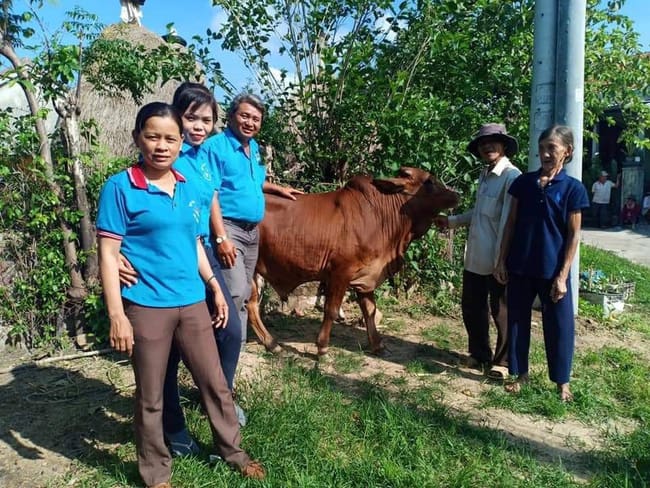 Tặng bò cho gia đình khó khăn.