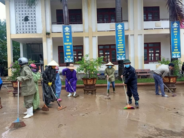 Hiện tại, nhiều đơn vị như quân đội, công an huyện Quảng Trạch cũng đã ra quân hỗ trợ các trường học trên địa bàn dọn dẹp để sớm đón học sinh quay trở lại học tập.
