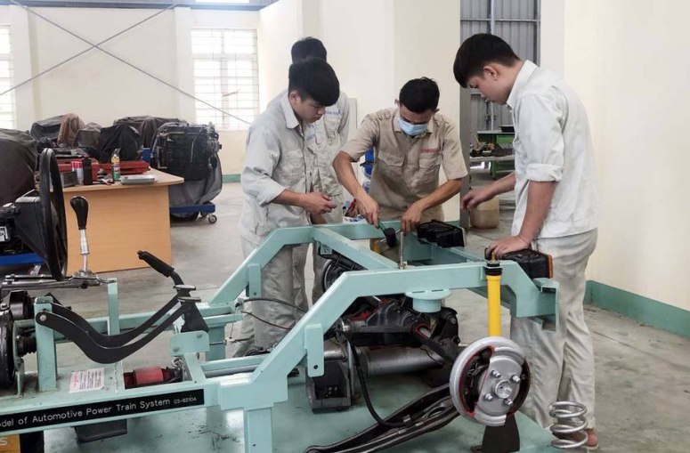 Sinh viên thực hành sửa chữa ô tô tại Trường Cao đẳng Công nghệ Việt- Hàn.