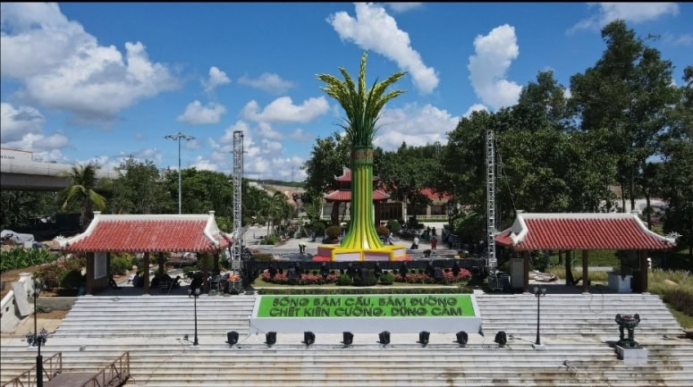 “Khi vào đây, tôi được mọi người kể lại rằng chiến trường nơi các anh chị hy sinh cũng là một vựa lúa của khu vực. Vì thế, hình ảnh hạt thóc càng mang lại những cảm xúc bi tráng. Sự hy sinh ấy lại là nguồn cho sự sống và sự phát triển. Tôi rất mừng khi ý tưởng đó đã được chấp thuận và được Tập đoàn T&T Group cùng đội ngũ thi công thực hiện một cách hoành tráng, đẹp đẽ”, ông Dương Trung Quốc nói và tin rằng tượng đài với hình ảnh 16 bông lúa sẽ trở thành điểm nhận diện của di tích này.