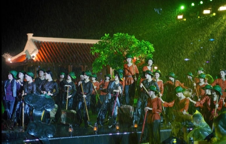 Khi chương trình bắt đầu, trời mưa to, gió lớn, sấm chớp liên hồi – nhưng không nghệ sĩ nào nản lòng. Họ vẫn hát, vẫn trình diễn với tất cả sự trân trọng và tâm huyết dành cho những người đã khuất. Dưới cơn mưa xối xả, hàng trăm khán giả vẫn lặng lẽ ngồi lại, chăm chú theo dõi chương trình đến phút cuối. Thỉnh thoảng, giữa âm thanh da diết của lời ca tiếng nhạc, vang lên vài tiếng nấc nghẹn ngào. Có những bàn tay khẽ đưa lên lau những giọt nước đang lăn trên má, chẳng rõ đó là mưa hay nước mắt – chỉ biết rằng tất cả đã cùng hòa tan vào nhau trong một khoảnh khắc thiêng liêng, nơi quá khứ và hiện tại như giao thoa giữa dòng sông hoa lửa.