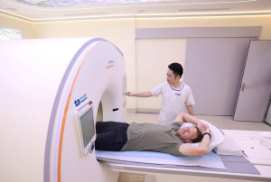 Danh thủ Teddy Sheringham trải nghiệm chụp siêu máy CT Somatom Force VB30 ứng dụng AI đầu tiên tại Việt Nam để tầm soát các chấn thương tiềm ẩn. Ảnh: BVĐK Tâm Anh