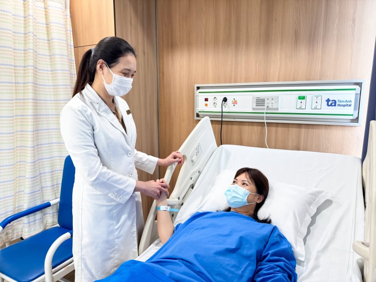 Bác sĩ Bệnh viện Đa khoa Tâm Anh thăm bệnh nhận sau phẫu thuật.