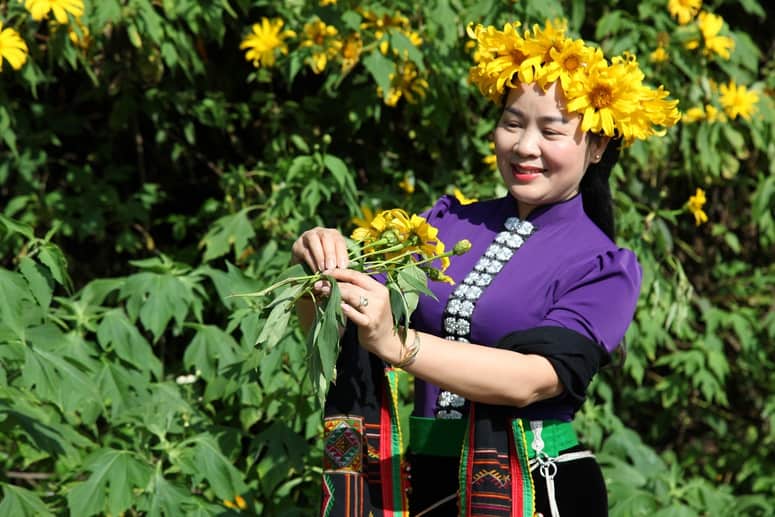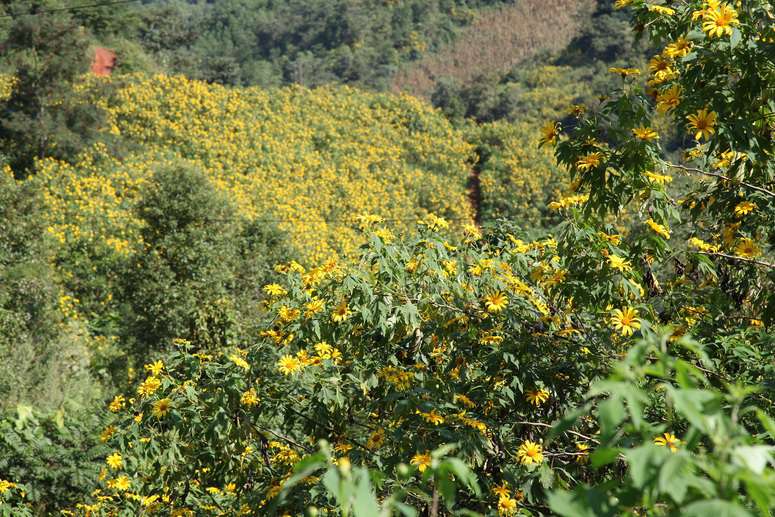 Hoa nở vàng rực ở khắp nơi, trên những triền núi cao, quanh bản mường, ven đồi nương…xung quanh thung lũng Mường Thanh đâu cũng thấy ánh lên sắc vàng ấm áp của loài hoa dã quỳ.
