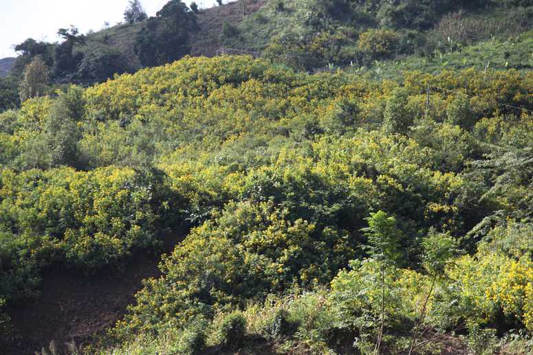Vào những ngày cuối Thu, đầu Đông, khi thời tiết bắt đầu se lạnh, giữa sắc xanh bạt ngàn của núi rừng Điện Biên bỗng bừng lên sắc vàng rực rỡ của hoa dã quỳ như xua đi cái lạnh của miền rẻo cao này.