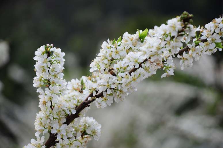 Còn ở trên các cao nguyên, thung lũng Mộc Châu, Chiềng Cọ, Chiềng Đen thành phố Sơn La những bông hoa mận bung màu trắng tinh khôi, điểm xuyết những chồi non, lộc biếc khiến cho bức tranh khung cảnh Tây Bắc đẹp hoang sơ mà say đắm.