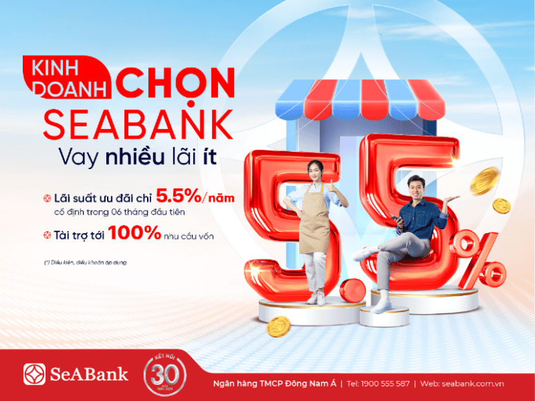 Nhằm tiếp tục tri ân và hỗ trợ tối đa cho khách hàng nhân dịp kỷ niệm 30 năm thành lập, Ngân hàng TMCP Đông Nam Á (SeABank, HOSE: SSB) tiếp tục triển khai chương trình ưu đãi “Chọn SeABank – Nhiều lợi ích – Ít âu lo” với việc tăng thêm ưu đãi cho gói “Vay nhiều lãi ít – Lãi suất ưu đãi” với lãi suất chỉ từ 4,5%/năm áp dụng cho khách hàng cá nhân khi vay bổ sung vốn kinh doanh.