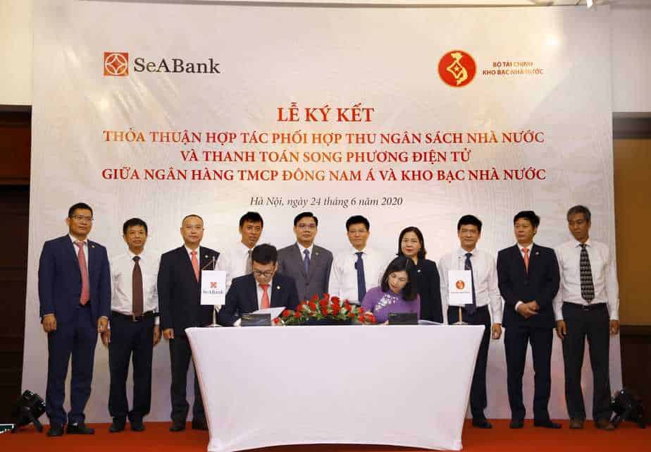 Ngày 24/6/2020 tại Hà Nội, Ngân hàng TMCP Đông Nam Á (SeABank) và Kho bạc Nhà nước (KBNN) đã ký kết Thỏa thuận hợp tác phối hợp thu ngân sách nhà nước (NSNN) và thanh toán song phương điện tử nhằm kết nối, trao đổi dữ liệu điện tử giữa hai bên, đảm bảo các hoạt động thu NSNN được nhanh chóng, chính xác, an toàn; đồng thời, tạo thuận lợi, hỗ trợ tốt hơn cho người dân, doanh nghiệp khi thực hiện nghĩa vụ với NSNN và tăng cường cải cách hành chính, giảm giao dịch tiền mặt qua KBNN.
