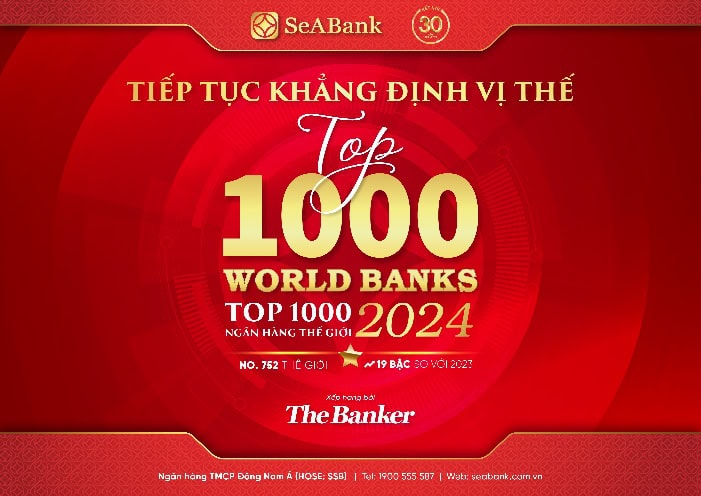 SeABank là một trong số ít ngân hàng Việt Nam góp mặt 3 năm liên tiếp trong bảng xếp hạng danh giá này với thứ hạng 752, tăng 19 bậc so với năm 2023 và tăng 169 bậc so với năm 2022. Việc SeABank liên tục góp mặt trong bảng xếp hạng danh giá cho thấy sự phát triển ngày càng toàn diện, hoạt động an toàn, lành mạnh, đồng thời thể hiện khả năng chống chịu rủi ro tốt trước tác nhân bên ngoài và cải thiện nguồn thu theo hướng bền vững hơn so với các ngân hàng trong khu vực. Trước đó, SeABank cũng được Tạp chí The Banker vinh danh tại hạng mục giải thưởng “Ngân hàng của năm – Bank of the Year” vào các năm 2013, 2021 và 2022.